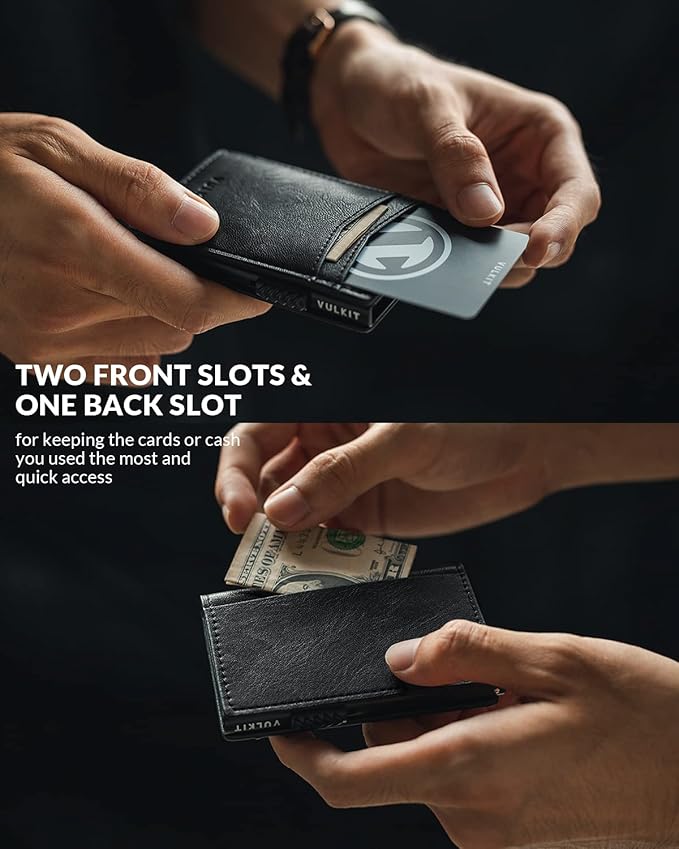 VULKIT Men's Slim Wallet Pop Up Card Holder RFID Blocking Metal Wallet Minimalist Design Holds Up to 11 Cards