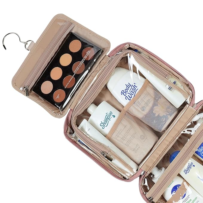 - STURDY HOOK DESIGN - Special U-shape zippers design, take out the toiletries or zip up the toiletry case quickly. No more unpacking, digging through one bag, and laying your stuff on the bathroom counter. Just hang the bag up, grab what you need, and put it back in it