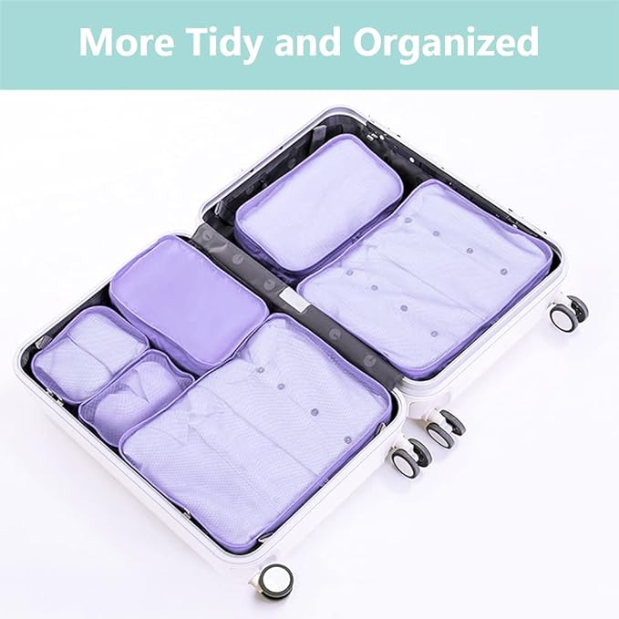 Packing cubes for Travel Luggage Organizer Bags 6 Set Packing Cubes for Suitcases Travel Essentials for Carry on Mesh Suitcase Organizer with Shoe Bag (purple)
