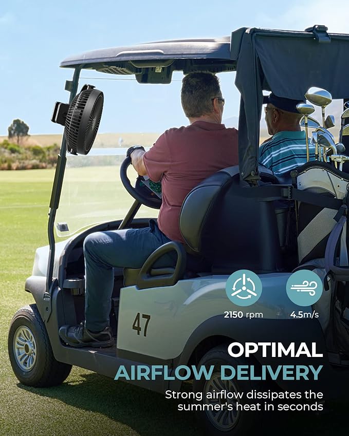 - Compact Size: This rechargeable fan is equipped with a robust clamp. You can easily place it at a corner of your desk, beside your treadmill, in your golf cart, besides your bed, or anywhere you like to have strong airflow. Its compact size doesn't take up much space.