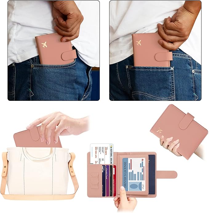 - 【Snap Button Closure and Security Protective】The passport holder with the hidden magnetic snap button closure design, which is safe and reliable to protect your travel items from being lost,to provide dual protection.Besides,RFID blocking shield material inside, Our passport case has a material engineered specifically to block 13.56 MHz or higher RFID signals and protect our important private information stored on your passport and credit cards from unauthorized scans.