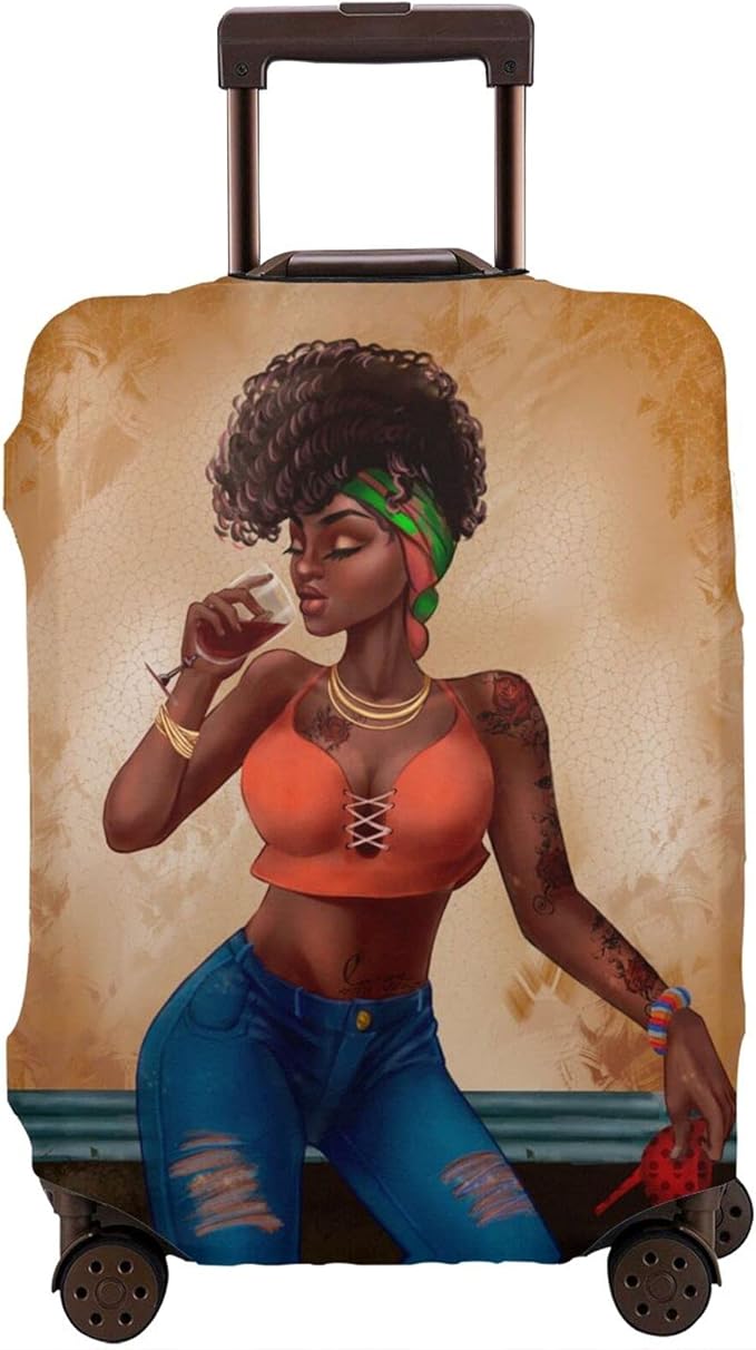Travel Suitcase Protector Explosion Hair Girl Elastic Protective Washable Luggage Cover With Concealed Zipper Suitable For Medium (A little large)