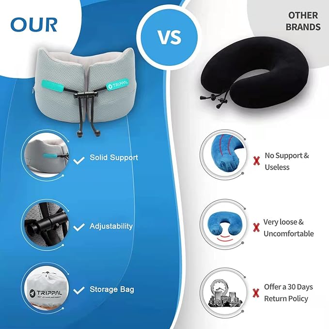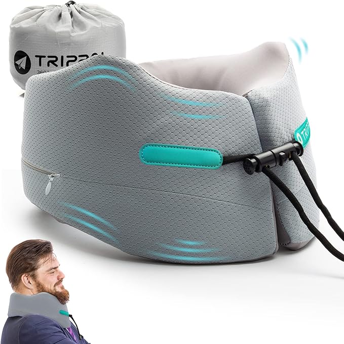 - PERFECT TRAVEL COMPANION: This airplane neck pillow comes with a lightweight, high-quality travel bag that allows you to reduce its size by half for easy storage and transport. Designed for comfort and portability, it is ideal for airplane, car, bus, and train travel, making it a great choice for office breaks and home use as well