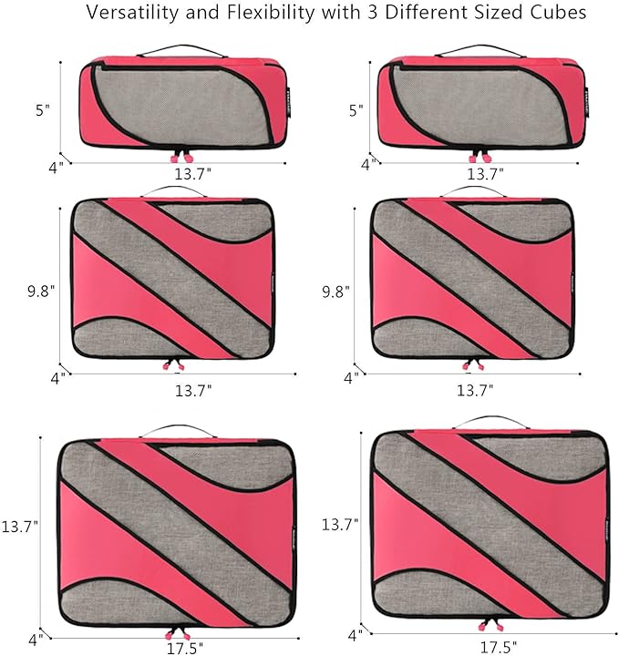 - Multi Functional: The 6 set organizers fit like a glove into regular suitcase; You can choose different cubes to fits your suitcase; That is an ideal way to keep organized for family breaks, business travel, long-distance travel, cruise holidays