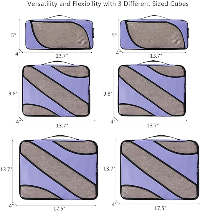 - Multi Functional: The 6 set organizers fit like a glove into regular suitcase; You can choose different cubes to fits your suitcase; That is an ideal way to keep organized for family breaks, business travel, long-distance travel, cruise holidays
