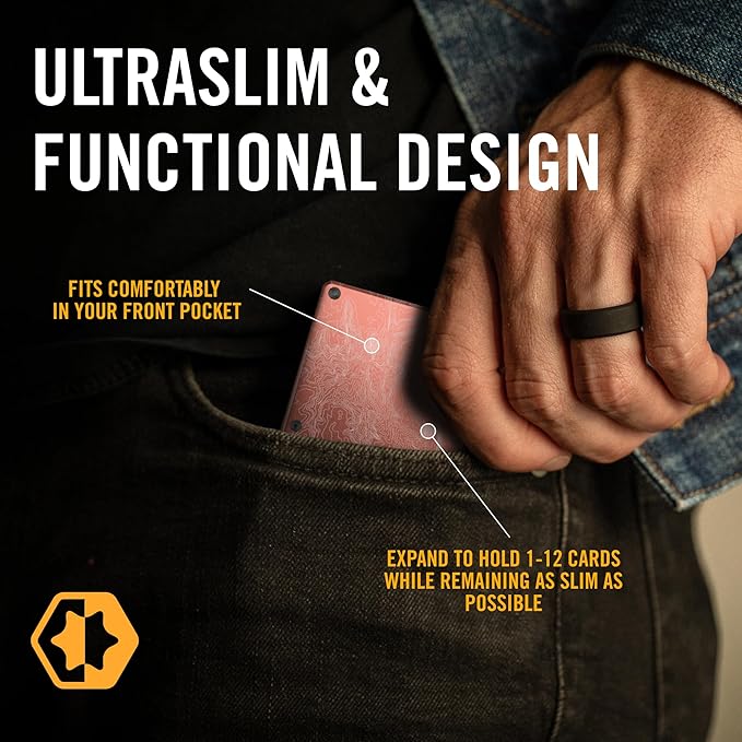 - FUNCTIONAL & SLIM: This men’s front pocket wallet slim design holds 1-12 cards without stretching out. Perfect for credit, debit, or business cards and bills. The handy outside notch lets you slide cards out easily, making it the smart, minimalist wallet for men.