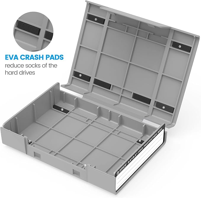 - Comprehensive Protection: The built-in EVA reinforced shock-resistant cushions wrapped on hard drive case both sides and four 2.5 hard disks are separated by brackets to maintain stability and eliminate the possibility of friction damage due to interaction with parts and make your data storage more secure