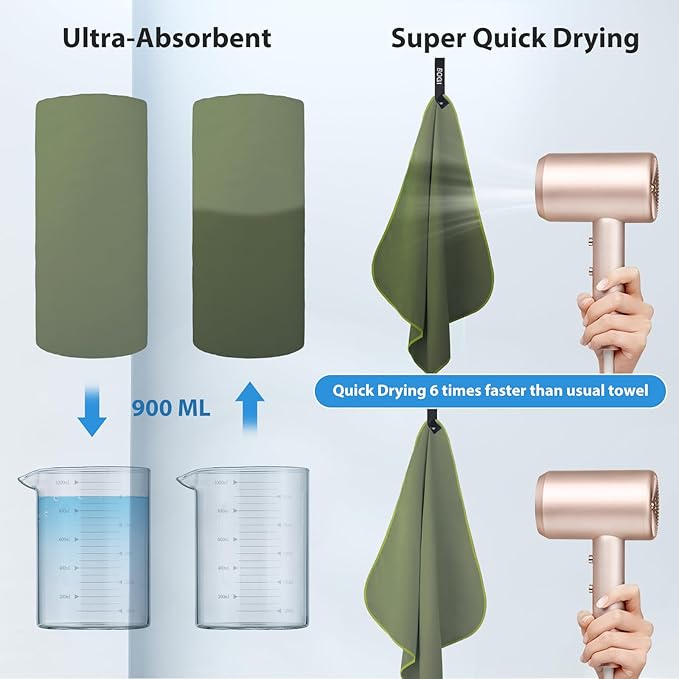 - Fast Drying & Ultra Absorbent: The microfiber towel for camping is 4 to 6 times faster than usual towel, and microfiber fabric absorbs 3 to 6 times. The quick-drying fabric has an excellent performance in water absorption and diffusion, which can shorten the drying time of water. So this microfiber sport towel is great for gym, yoga, travel, camping, hiking,etc. The backpacking towel is so soft and ultra absorbent. BOGI microfiber camping towel is an ideal sports or travel companion.