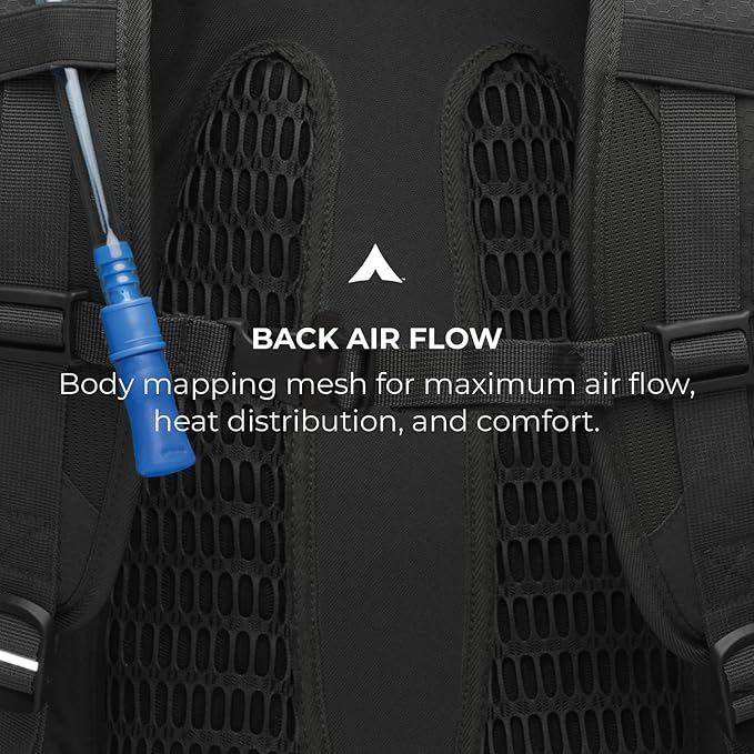 - 2-LITER WATER BLADDER INCLUDED: Durable, kink-free sip tube and push-lock cushioned bite valve ensure smooth drinking. Wide 2" opening makes adding ice and cleaning easy. Leakproof design built for long hikes, runs, and bike rides.