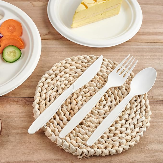 - Suitable for any Occasion: The simple appearance is in harmony with any scene. You can use these compostable utensils set for daily meals, parties, picnics, weddings, birthdays, barbecues, and more