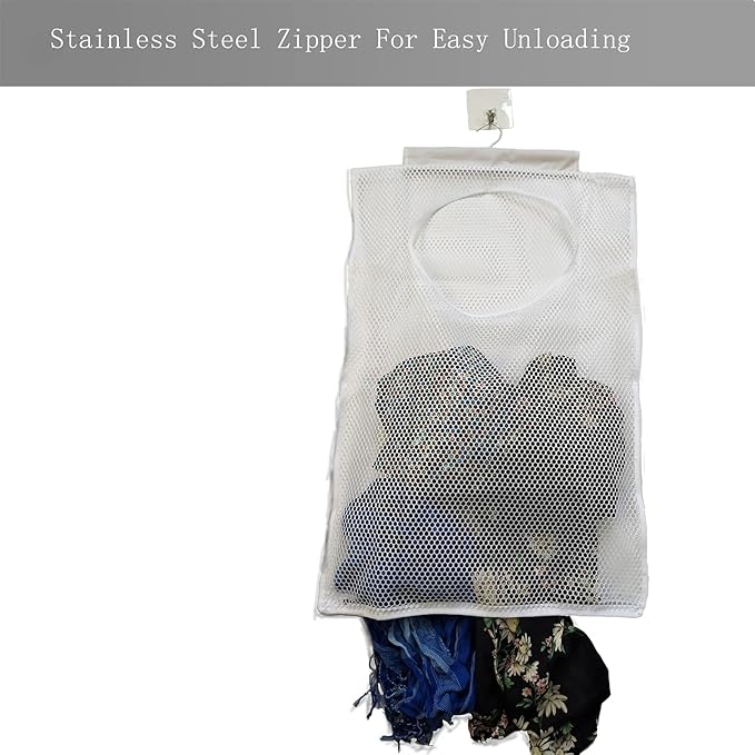 Hanging Mesh Laundry Hamper (30in*20in*2in) Large Dirty Clothes Bag, Can Be Used Behind The Door & Closet & Caravan& Bathroom (White)