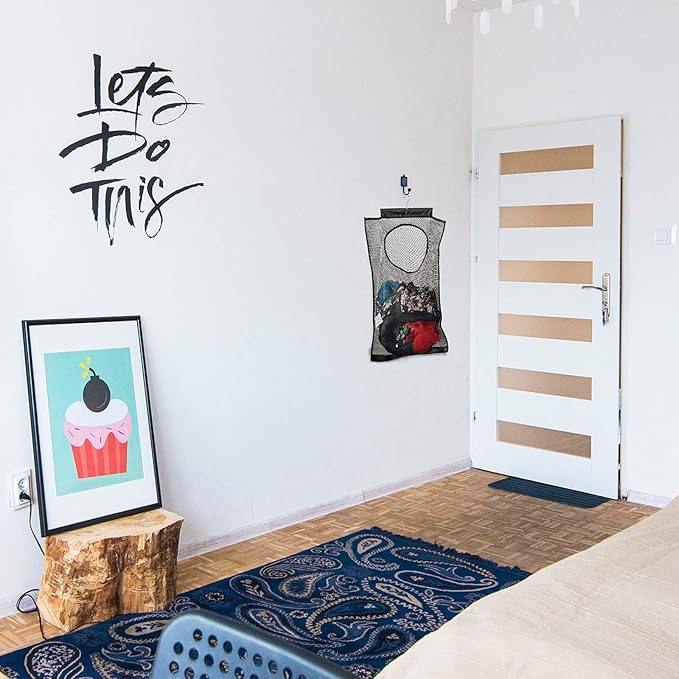 Hanging Mesh Laundry Hamper (30in*20in*2in) Large Dirty Clothes Bag, Can Be Used Behind The Door & Closet & Caravan& Bathroom (Black)