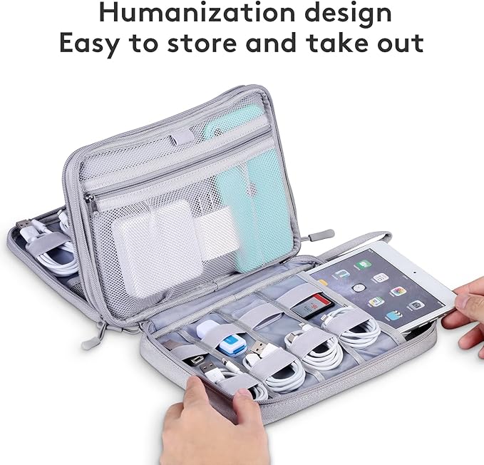 - 2 Compartments Design: This organizer pouch comes with 2 compartments pockets, designed to store your tech stuffs and keep them organized. It can put your power bank, SD memory card, cables, earphone, connector adapter together