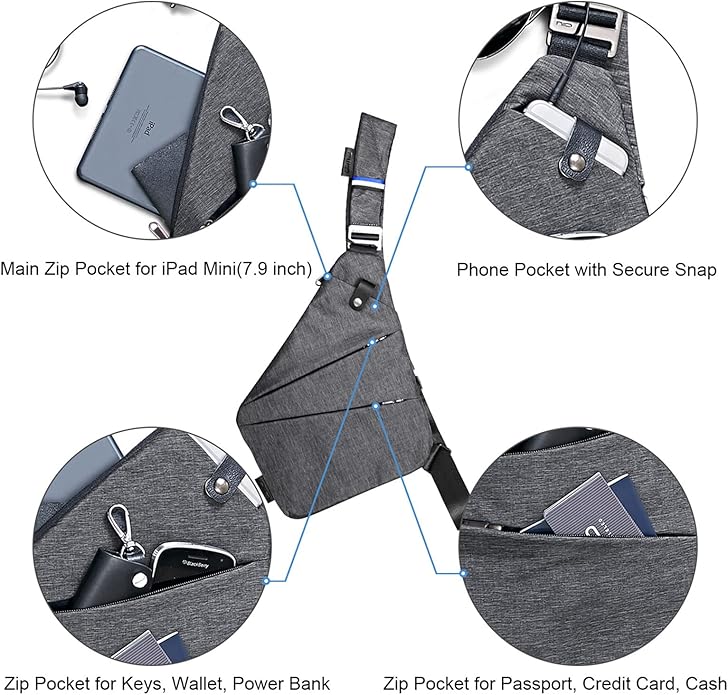 - 【Crossbody Chest Bag】 Stay close to body design make you pack light and efficient, slim enough to be worn under a light jacket or sweater, comfortabLe to wear and not bulky.