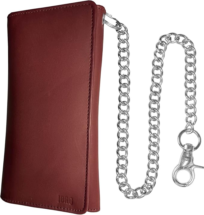 • RUST FREE METAL CHAIN: This biker wallet for men includes a heavy duty 18" removable metal chain with a secure dog lock clasp. Built to last and resist rust, it attaches easily to your belt loop to keep your wallet safe, secure, and perfect for bikers, truckers, or anyone who values style with reliable protection.