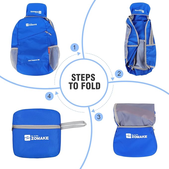 - FOLDABLE TRAVEL DAYPACK:Its storage pocket is a zipper pocket inside the main pocket. Unfold size: 17.25x10x7.75 inches. Folded size only 8.75 * 8 inches, only 0.55 lb. When it is not used, fold it into a compact pocket (sandwich size). The ultralight fold-up day pack can be stored anywhere in pockets; suitcases; luggage; handbags; car; etc