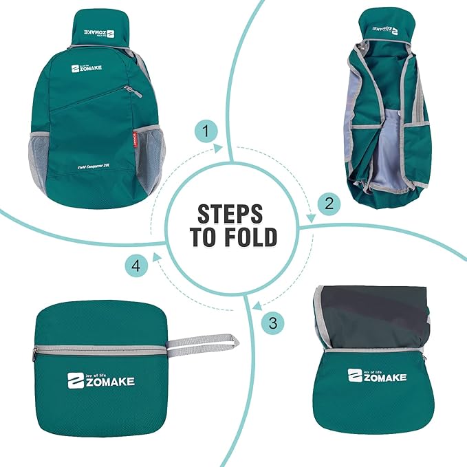 - FOLDABLE TRAVEL DAYPACK:Its storage pocket is a zipper pocket inside the main pocket. Unfold size: 17.25x10x7.75 inches. Folded size only 8.75 * 8 inches, only 0.55 lb. When it is not used, fold it into a compact pocket (sandwich size). The ultralight fold-up day pack can be stored anywhere in pockets; suitcases; luggage; handbags; car; etc