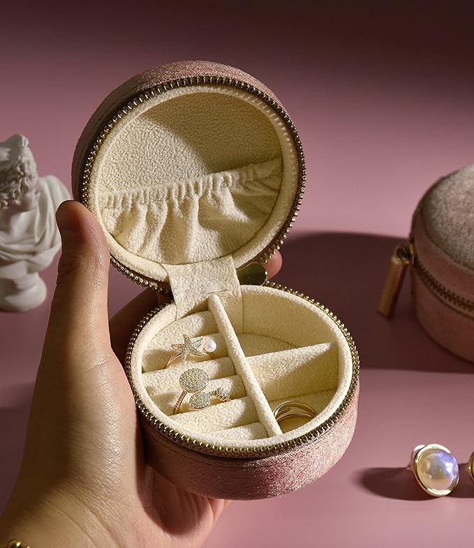 - 【Travel Essentials】Do you need a mini jewelry travel case to carry around? If you don't plan to bring a lot of jewelry, this round travel jewelry organizer will be your best choice. It can easily hold several rings, earrings, necklaces and other small pieces of jewelry, so that you can dress up at any time and anywhere.