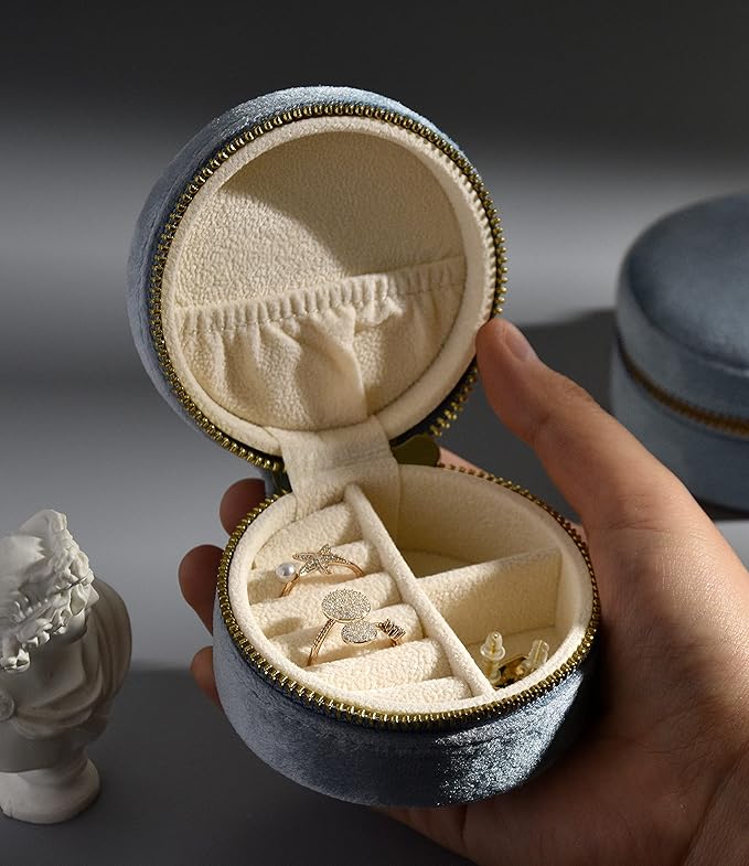 - 【Travel Essentials】Do you need a mini jewelry travel case to carry around? If you don't plan to bring a lot of jewelry, this round travel jewelry organizer will be your best choice. It can easily hold several rings, earrings, necklaces and other small pieces of jewelry, so that you can dress up at any time and anywhere.