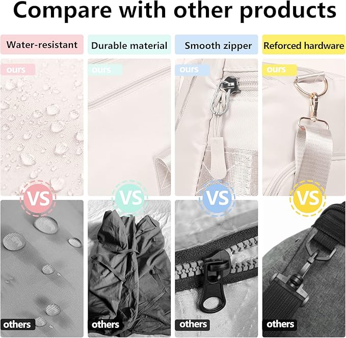 - DRY WET SEPERATED DESIGN & SHOE COMPARTMENT: The high density waterproof pocket can help you to divide wet clothes, towels, shampoo or cold drinks. Built-in shoe compartment keeps your shoe storage private and fresh. Additional storage pockets to organize your items and necessities.