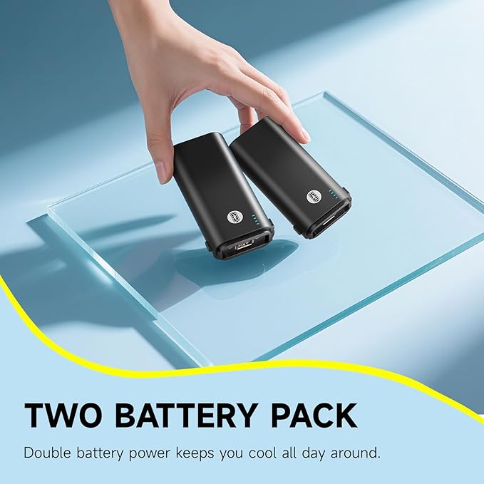 - More power for you: Come with two battery packs, up to 40Hrs cooling, power exhausted, use another one immediately, save charging waiting time (The battery can be replaced separately, extending the life of the fan)