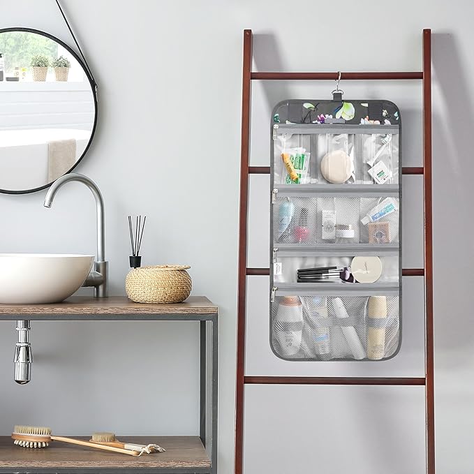 - HANGS FOR EASY ACCESS: Built-in hook lets you hang the bag anywhere, perfect for hotel bathrooms or cruise cabins. Unzips to reveal 4 spacious compartments and a front zipper pocket, keeping toiletries, skincare, and makeup organized and within reach.