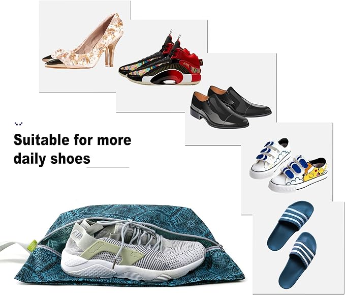 - Versatility Beyond Shoe Storage: These shoe bags for travel go beyond mere shoe storage – they're a versatile solution for maintaining order in your rooms and suitcases. Keep your shoes organized and clothes clean effortlessly. Besides serving as shoe bags, they can double as makeup bags, toiletry bags, travel laundry bags, organizers, or gym storage bags. Elevate your organization game, bringing joy to both your housework and daily life while maximizing your space.
