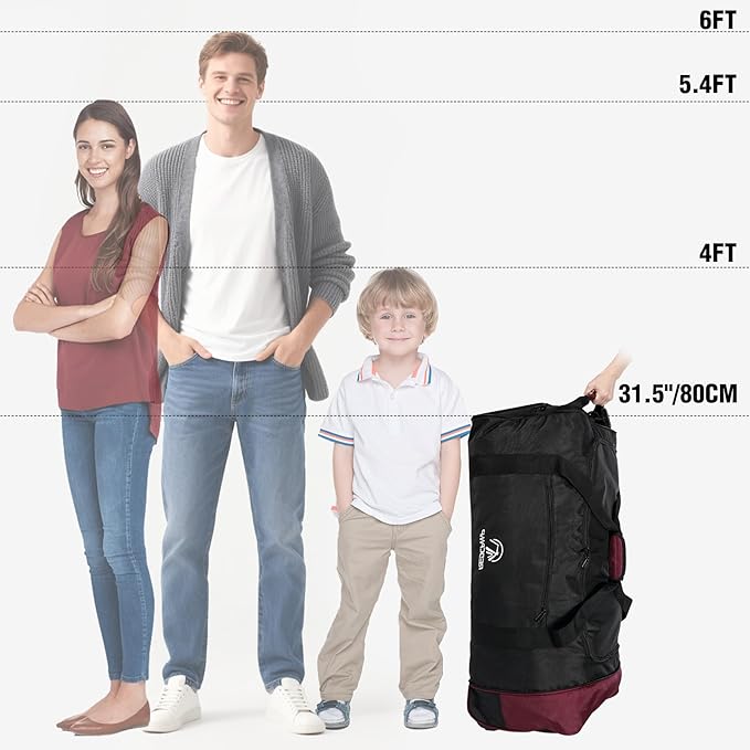 - Multifunctional: The roller duffel bag is used as travel bag, airplane carryon, luggage, gym bag, sports bag, camping bag, storage bag. Always take this folding duffle with you on any trip, open up when you need to carry gifts or transfer stuffs