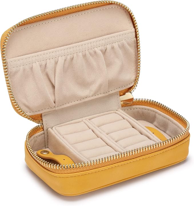 - Secure Storage: Anti-tarnish suede lining and a gold-tone zipper protect fine jewelry from tangling, scratching, or tarnishing; dedicated compartments for rings, earrings, and necklaces