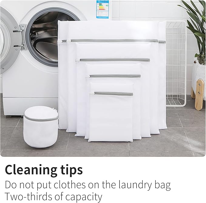 - 【Warm tips】 About 70% of the delicates laundry bag should be filled with clothes. Do not load the washing machine too full, it has a better decontamination ability when it is filled with 70% clothes. Please do not pull the zipper on the mesh laundry bags to the end to prevent the zipper from falling off.