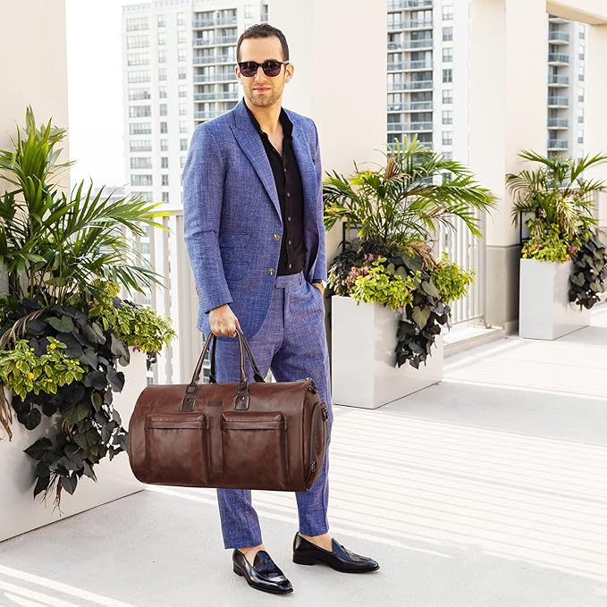 Modoker Convertible Leather Garment Bag, Carry on Garment Bags for Travel Waterproof Garment Duffel Bag Gifts for Men Women Business - 2 in 1 Hanging Suitcase Suit Travel Bags in Brown
