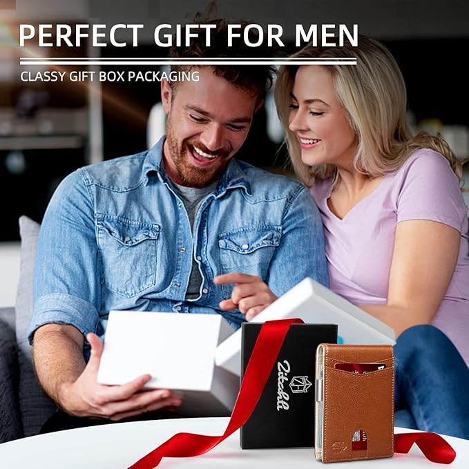 Zitahli Money Clip Wallets for Men,Slim Bifold Wallet 10-12 Cards, Mens Leather Wallet with ID Window,RFID Blocking Thin Minimalist Credit Card Holder,Gifts for Him