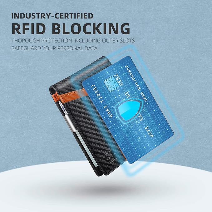 - CERTIFIED RFID SECURITY - Our card holder features German institute-certified RFID SECURE Technology, effectively blocking RFID signals at 13.56 MHz and above, safeguarding your chip-stored data from unauthorized scans