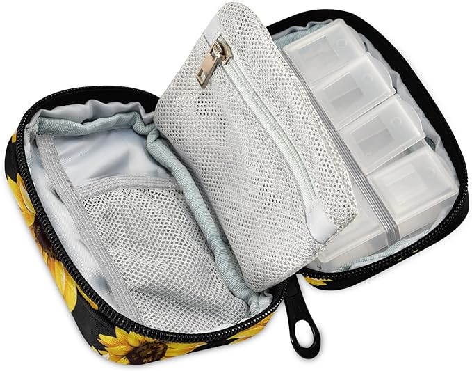 Black Sunflower Travel Pill Organizer Weekly Small (Cute) Pill Box 7 Day Pill Case Vitamin Holder Pill Bottle Organizer