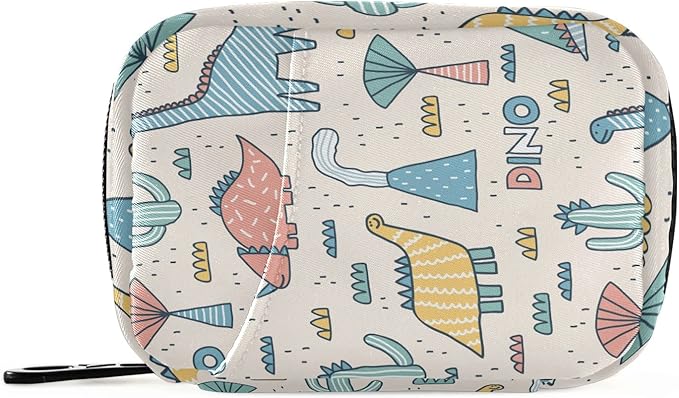 Beige Dinosaur Travel Pill Organizer Weekly Small (Cute) Pill Box 7 Day Pill Case Vitamin Holder Pill Bottle Organizer