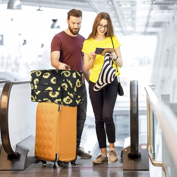 F.FETIVIN Weekender Bag Carry On Travel Duffle Medium Overnight Bag for Women(Sunflower)