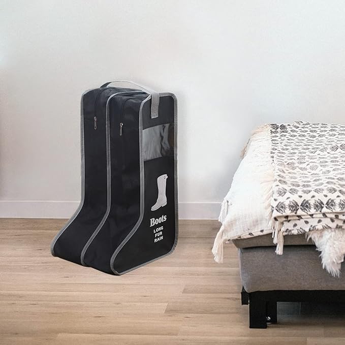 - A Great Storage Solution for Boots — Still troubled by nowhere to store your beloved boots? Boots Storage bag is a great storage solution. Accommodates most leather boots, cowboy boots, snow boots and more. Suitable for home and travel use.