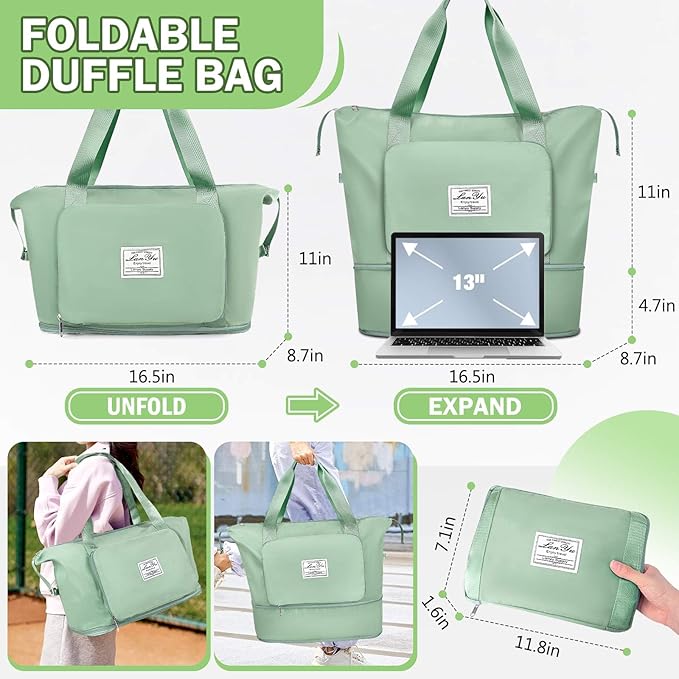 - Foldable Expansion Design: The large capacity folding travel bag women has the function of fold and capacity expansion.Folding Dimension: 10.6x6.7x1.96 in.Unfolding Dimension:16.5x8.7x10.6in.Expansion Dimension: 16.5x8.7x15.3in.Three specifications meet your different needs,suitabLe for your business trip or weekender journey