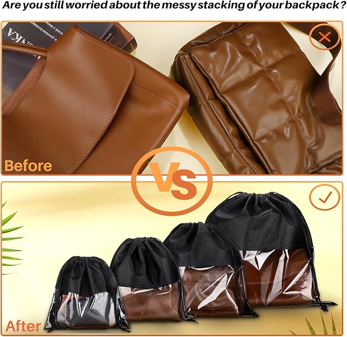 - Easy Storage: these purse protector bags are designed with drawstrings, easy to open and close, so that the built in items in the bag to get good protection and dust, to extend the use of your item's time, can also be folded up when not in use, does not take up too much space
