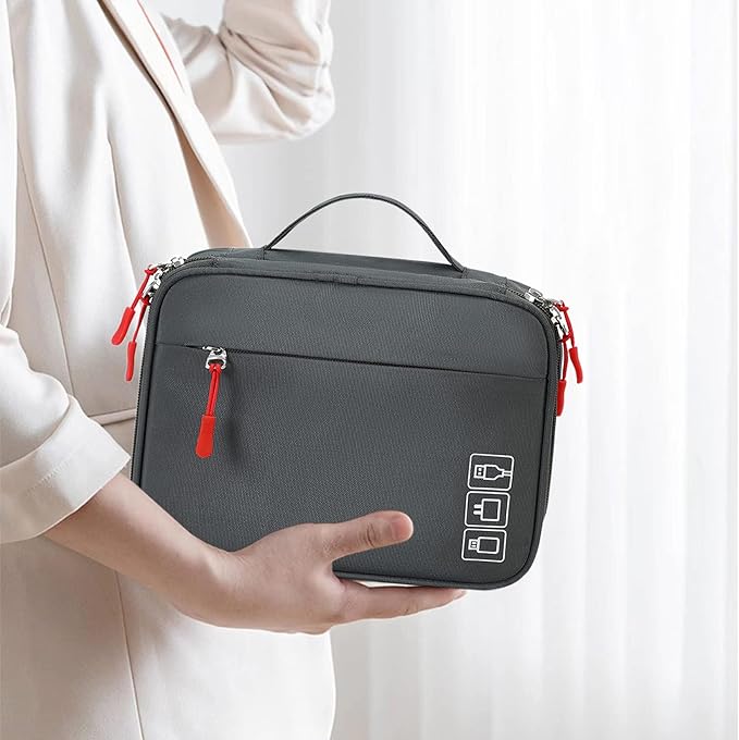 - Large Capacity: L9.4*W7.1*H4.3 inches (24*18*11 CM). Double layers design has enough space to store your chargers, cables, adapters, power bank, earphones, sd card, mouse, wireless charging-pads, cords, smartwatch and any small electronic accessiories.