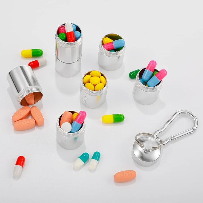 - Waterproof and Safe: this keychain pill holder is made of quality aluminium alloy, reliable and no other fillers, safe and odorless, you can use it to contain tablets without worries, sealed and waterproof, reusable and available for a long time use if stored well
