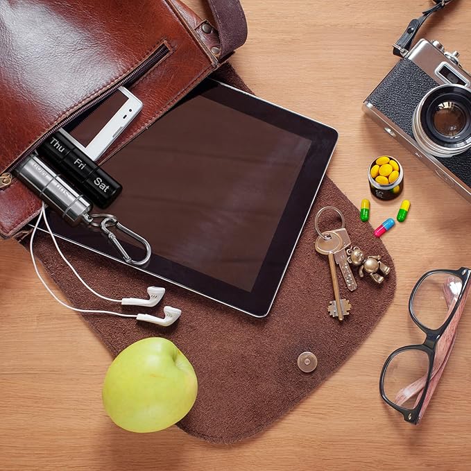 - 7 Day Design: each pill keychain holder is printed with the day of the week to avoid confusion, and each compartment is independent and stackable and can be carried in sections as needed, 7 independent compartments can be adjusted