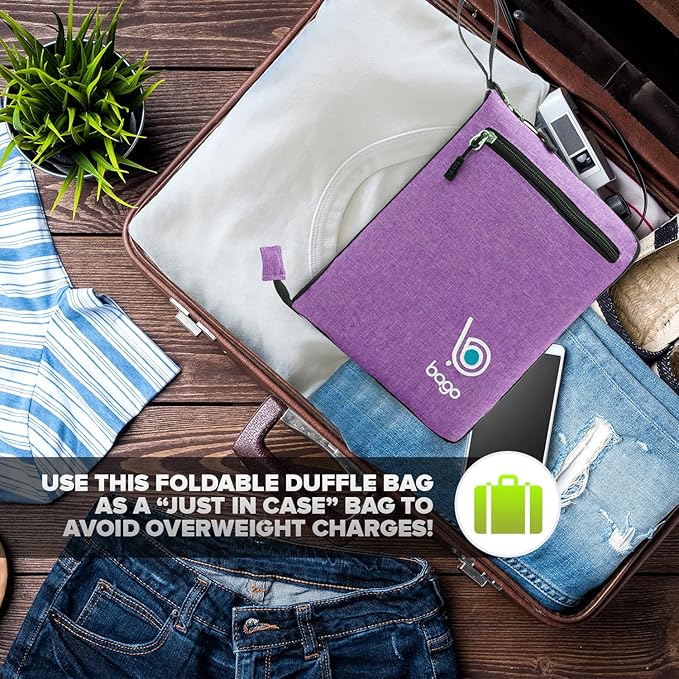 Bago Foldable Duffel Bags for Traveling Women & Men - 40L Sports Packable Duffle Bag for Travel with Shoe Compartment - Water Repellant, Heavy Duty, Lightweight Folding & Collapsible (SnowDepPurple)