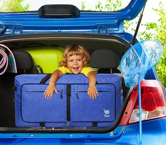 Bago Large Foldable Duffel Bags for Traveling Women & Men - 120L Packable Duffle Bag for Travel with Shoe Compartment - Water Repellant, Heavy Duty, Lightweight Folding & Collapsible (SnowDepBlue)