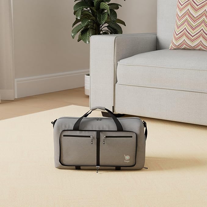 Bago Foldable Duffel Bags for Traveling Women & Men - 40L Sports Packable Duffle Bag for Travel with Shoe Compartment - Water Repellant, Heavy Duty, Lightweight Folding & Collapsible (SnowGray)
