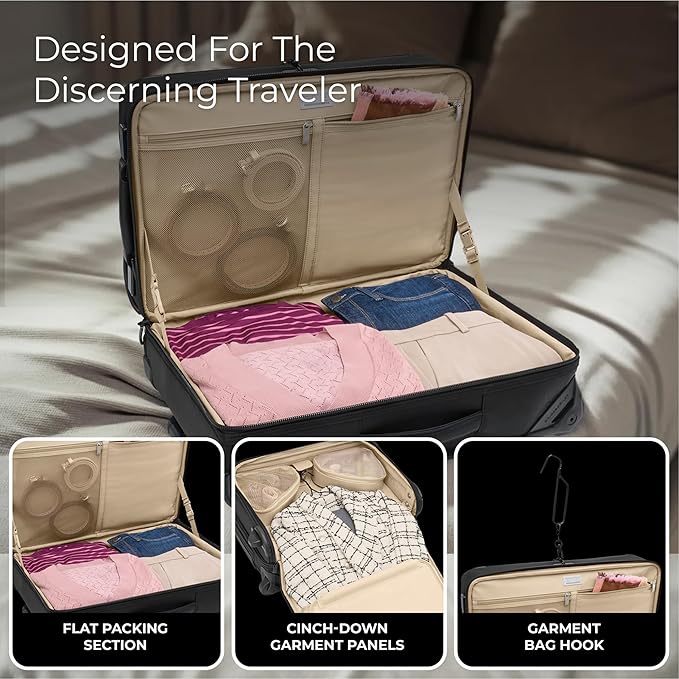 - DESIGNED FOR GARMENTS - A flat packing surface helps reduce wrinkles, keeping clothes crisp. The hanger bracket securely holds 1-3 garments for organized packing