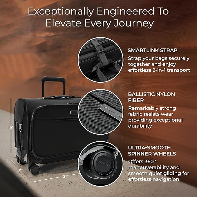 Briggs & Riley 21" Carry-On Wheeled Garment Spinner - Carry On Luggage for Travel, Suitcases with Wheels, Softside Rolling Bag for Men & Women, Built in Hook for Clothes - Baseline Collection, Black