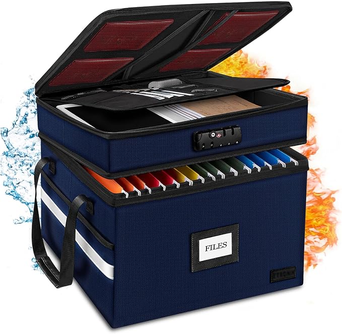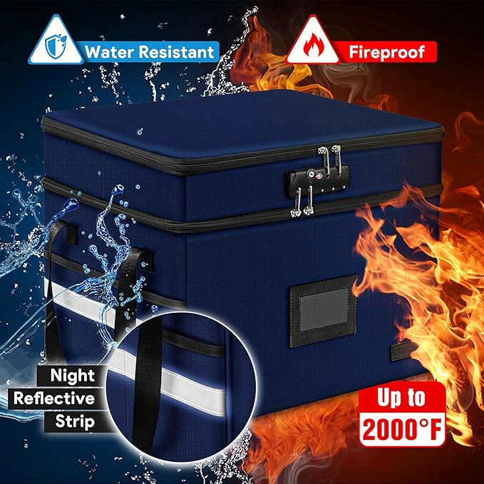 - Fireproof and Water-resistant Safe: Our 16.14*13.8*12.6 inches large file box is made of double-layered non-itchy silicone coated fiberglass which stands up to the temperature up to 2000℉. The double-layer file box is fireproof and waterproof, which can effectively protect your important documents in a fire, flood, and wet weather. They will further keep your files intact