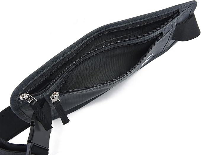 - MONEY BELT for TRAVEL: Anti-theft RFID Blocking material, effectively prevent your personal information from being scanned (credit card, passport, personal ID, cash, etc.) 1.45 inch adjustable elastic strap, two metal zippers and pockets! Inner with two pockets for credit cards or coins and a small Carabiner Clip for keys