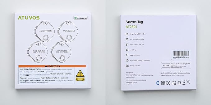- ✅【Long-lasting Battery Life】The ATUVOS air tracker tag uses a low-power chip, which greatly extends battery life. When the battery is low, ATUVOS tracking device will notify you to replace the battery(CR2032 coin cell). Note: Battery life varies with usage, environmental conditions, replacement battery manufacturer and many other factors.